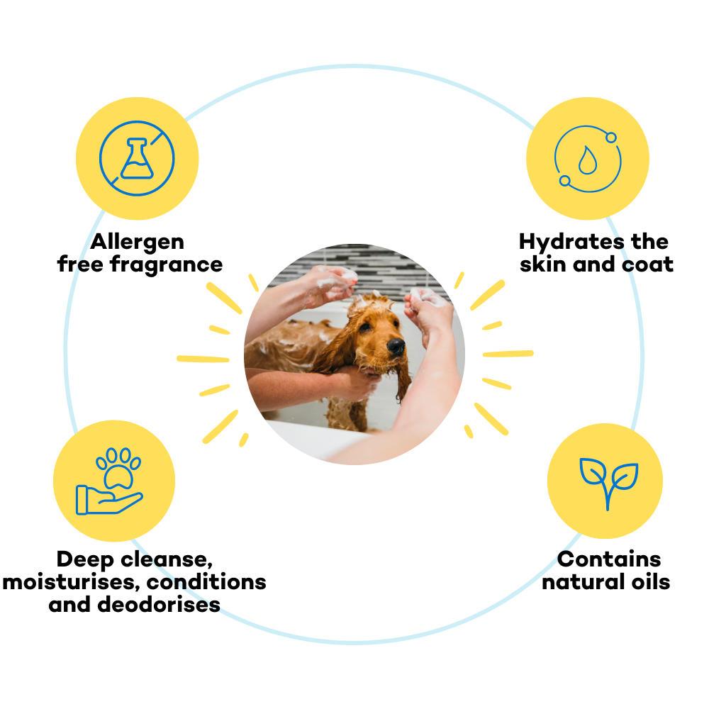 Bath time doesn’t need four different bottles. This gentle 4-in-1 wash leaves the coat clean, soft, nourished, and lightly freshened. All in one smooth weekly...